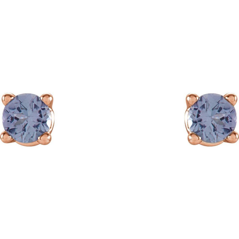 14k Rose Gold 2.5 mm Natural Tanzanite Stud Earrings