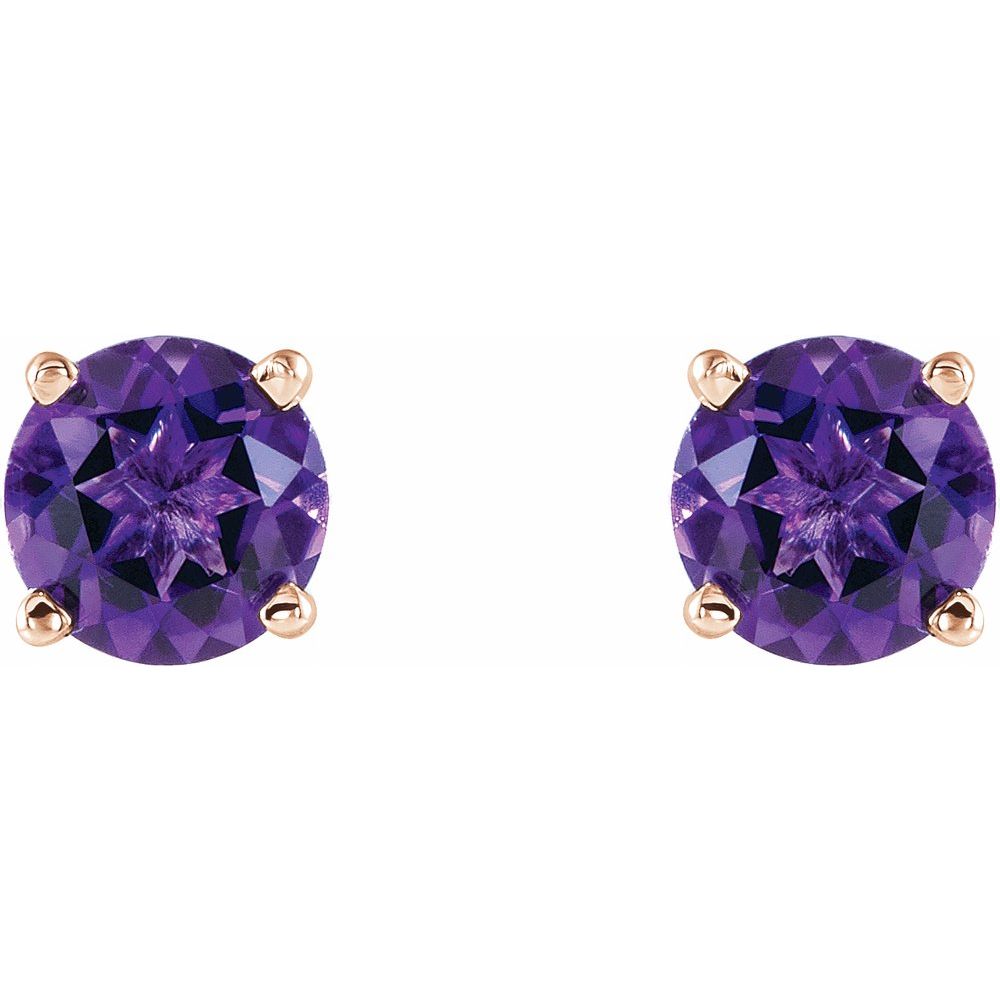 14k Rose Gold 5 mm Natural Amethyst Stud Earrings