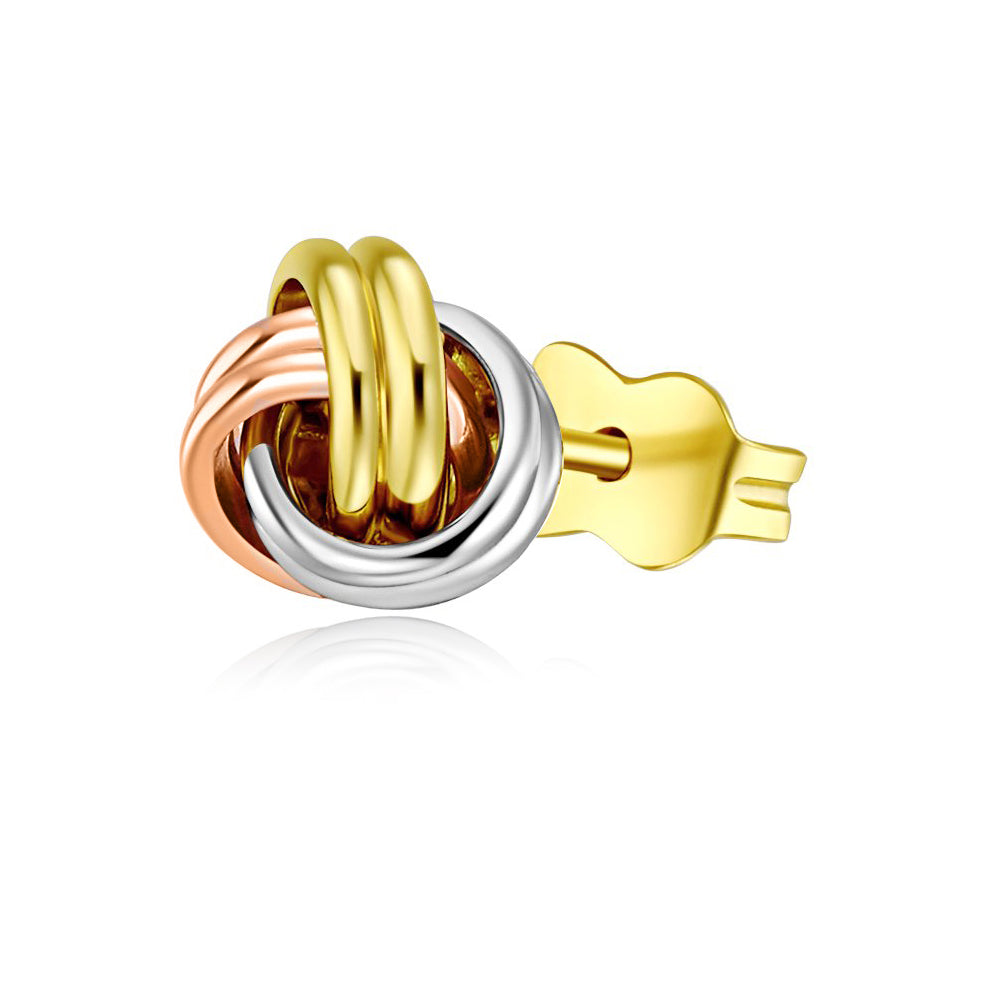 Genuine 14k Tri-tone Gold 7mm Triple Row Love Knot Earring Studs for Women