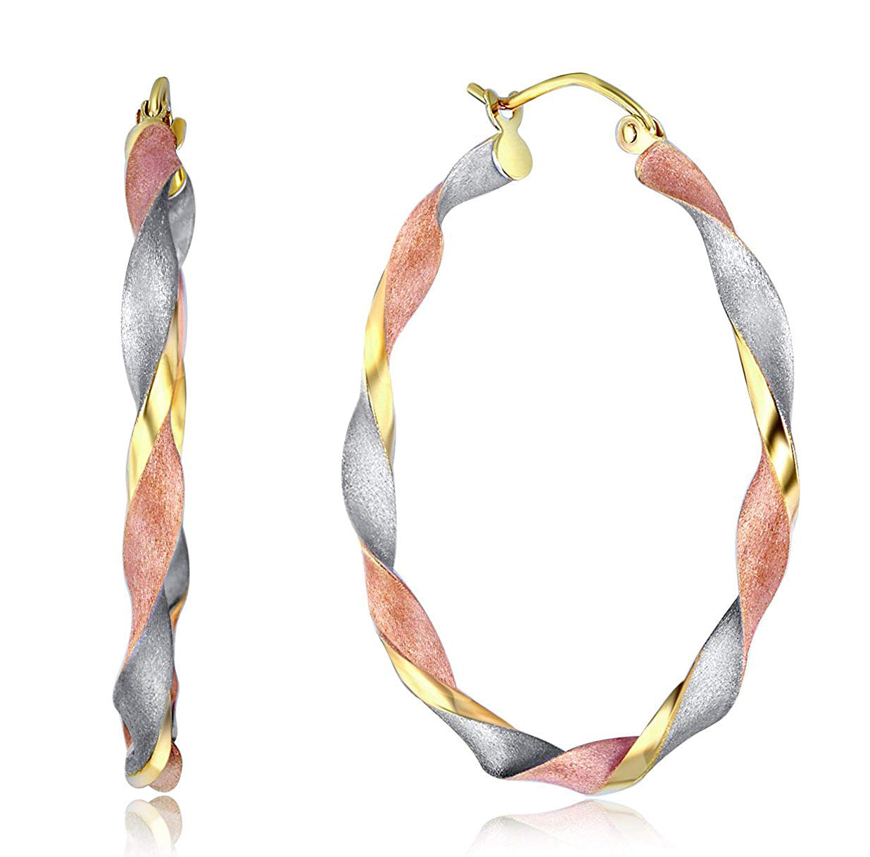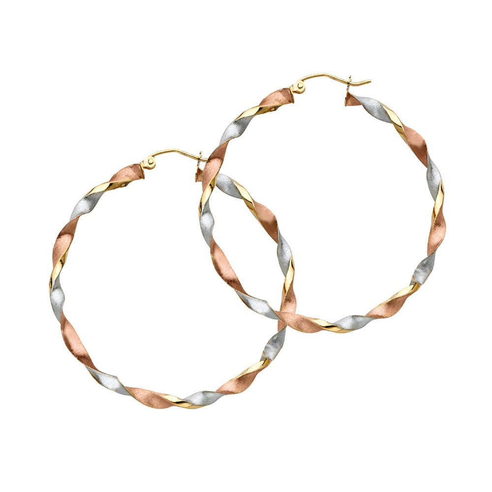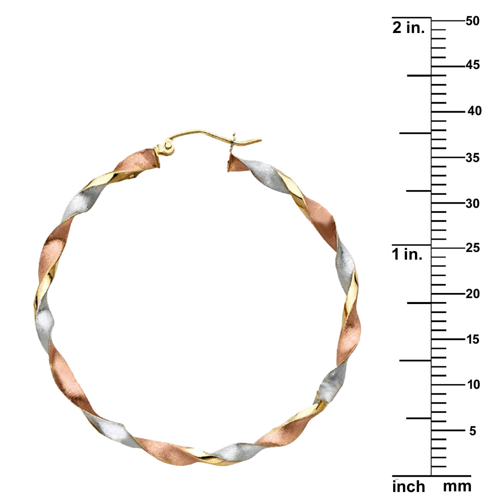 Genuine 14K Tri-tone Gold Large Twisted Hoop Earrings For Women - 35mm Diameter