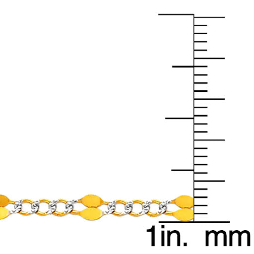 14k Two-tone Gold 3.2mm White Pave Stamped Figaro Chain Necklace