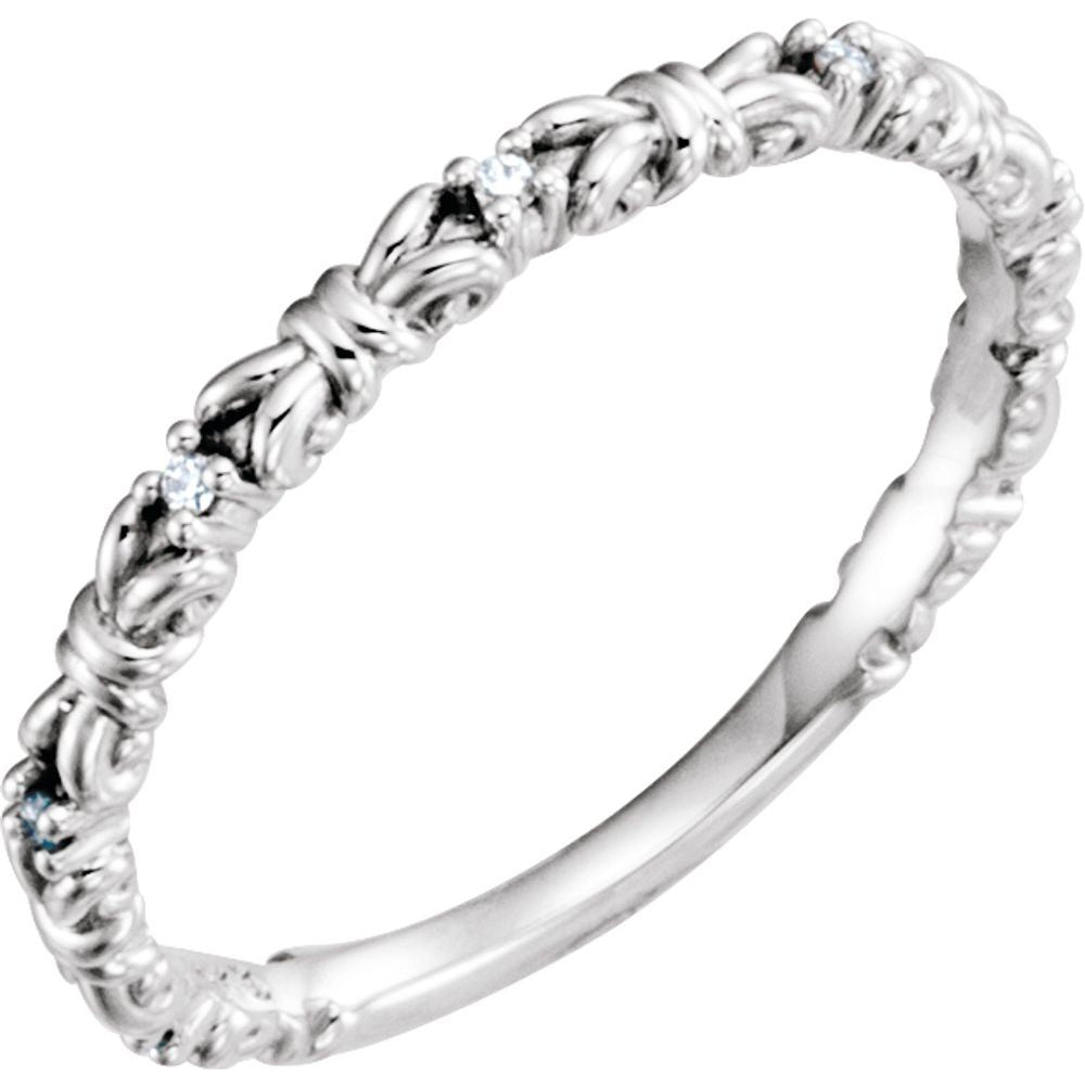 Genuine 14K White Gold 0.04ct Natural Diamond Braided Stackable Ring Size 7
