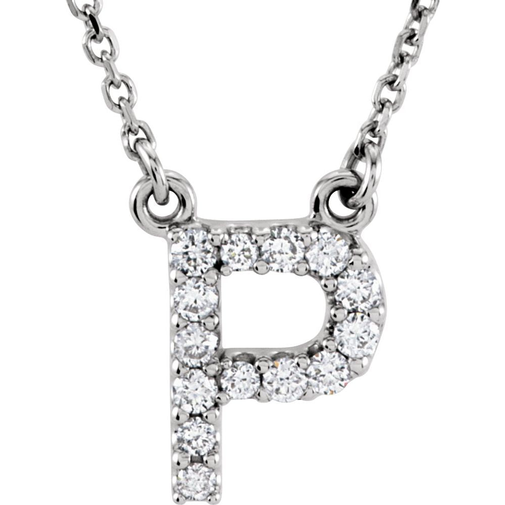 Precious Stars 14K White Gold 1/8CTW White Diamond Initial P Pendant Necklace