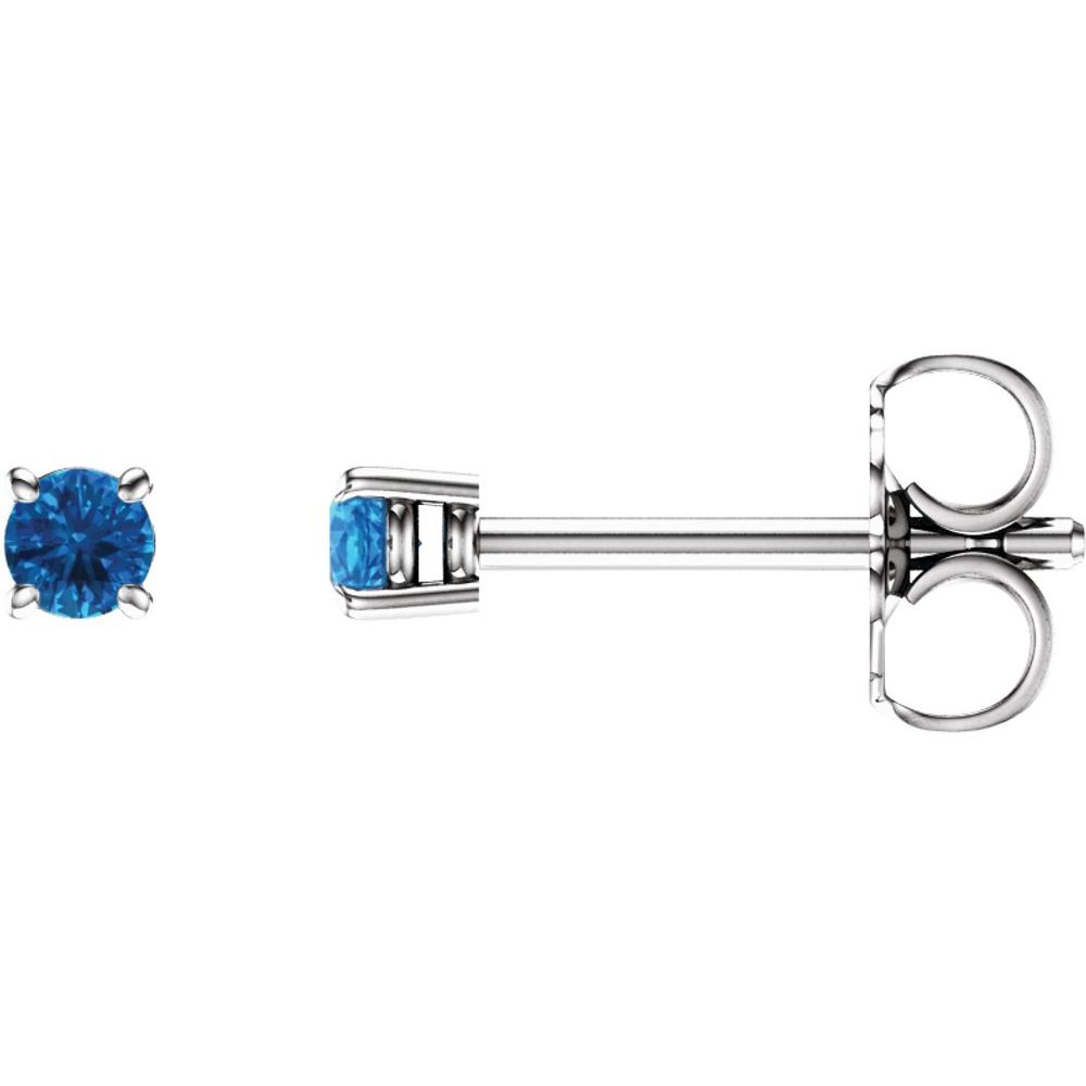 14k White Gold 2.5 mm Natural Swiss Blue Topaz Stud Earrings