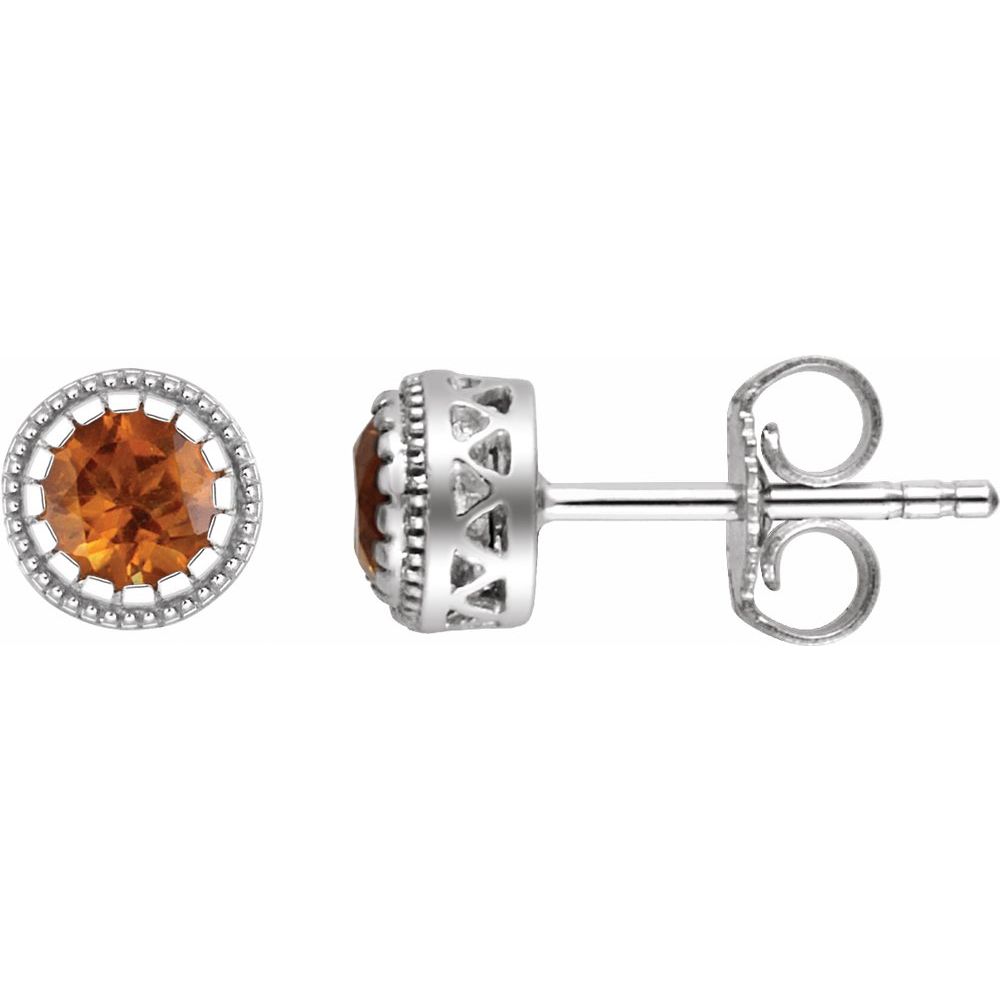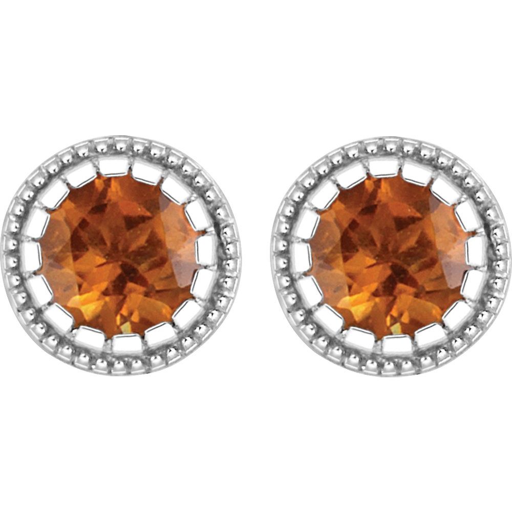 14k White Gold 4 mm Natural Citrine Stud Earrings