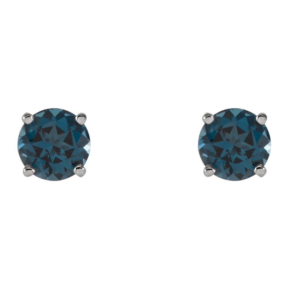 14k White Gold 5 mm Natural London Blue Topaz Stud Earrings