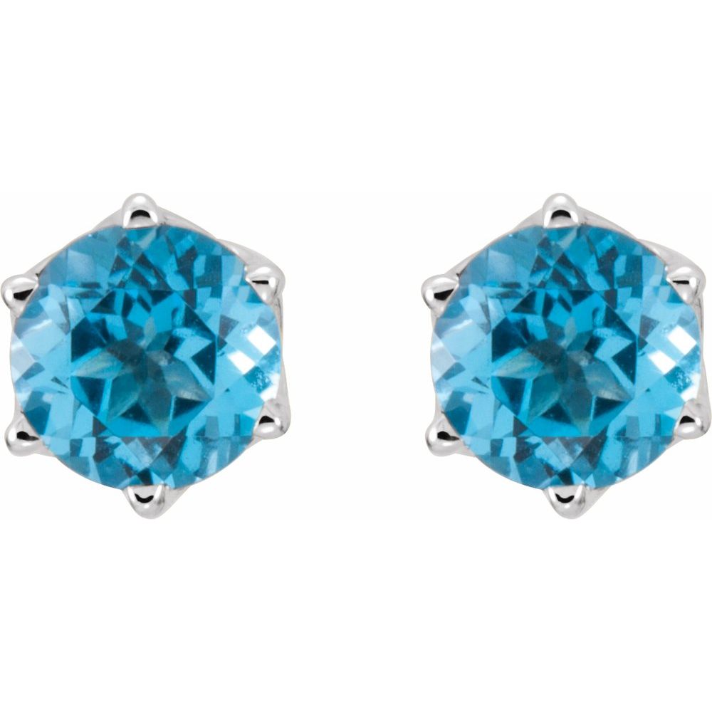 14k White Gold 6 mm Natural Swiss Blue Topaz Stud Earrings