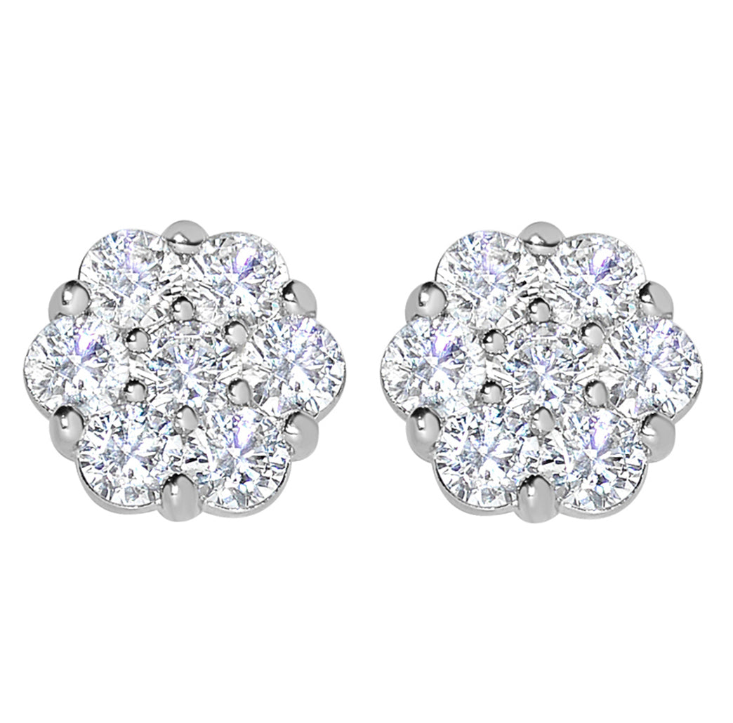 Genuine 14k White Gold 9.5mm Cubic Zirconia CZ Flower Cluster Women's Earring Studs