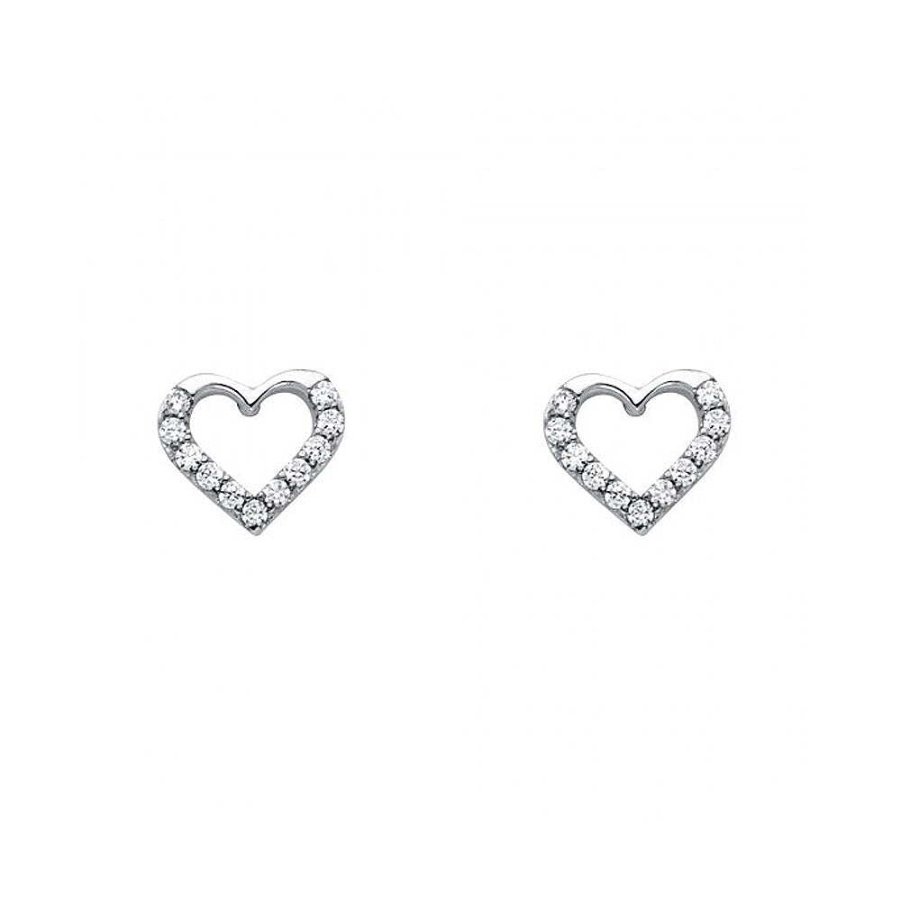 Genuine 14k White Gold 8mm Cubic Zirconia CZ Lined Open Heart Ladies Stud Earrings