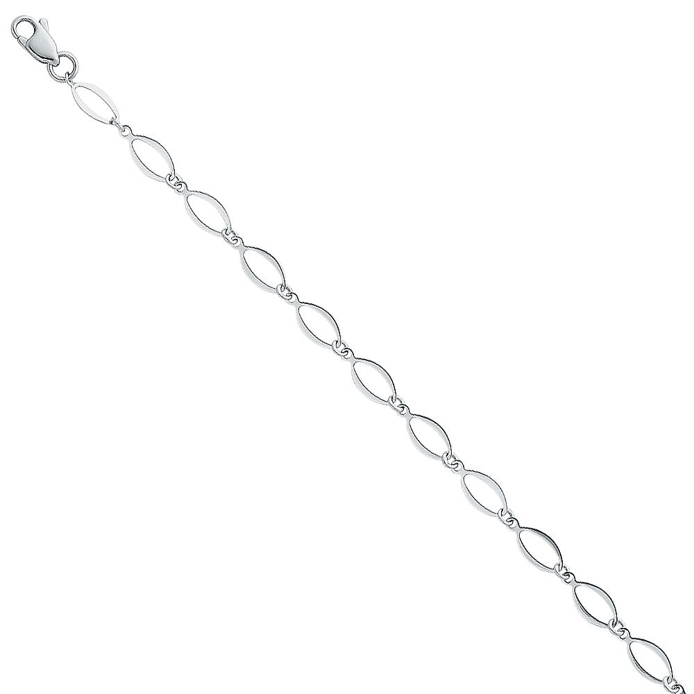 Crafted from genuine 14-karat white gold, this elegant bracelet showcases flat oval-shaped links that exude timeless sophistication. Designed with a lightweight construction for exceptional comfort, it is perfect for everyday wear. Measuring 7.25 inches in length, this versatile piece is secured with a reliable lobster claw closure, offering both style and practicality for any jewelry collection.