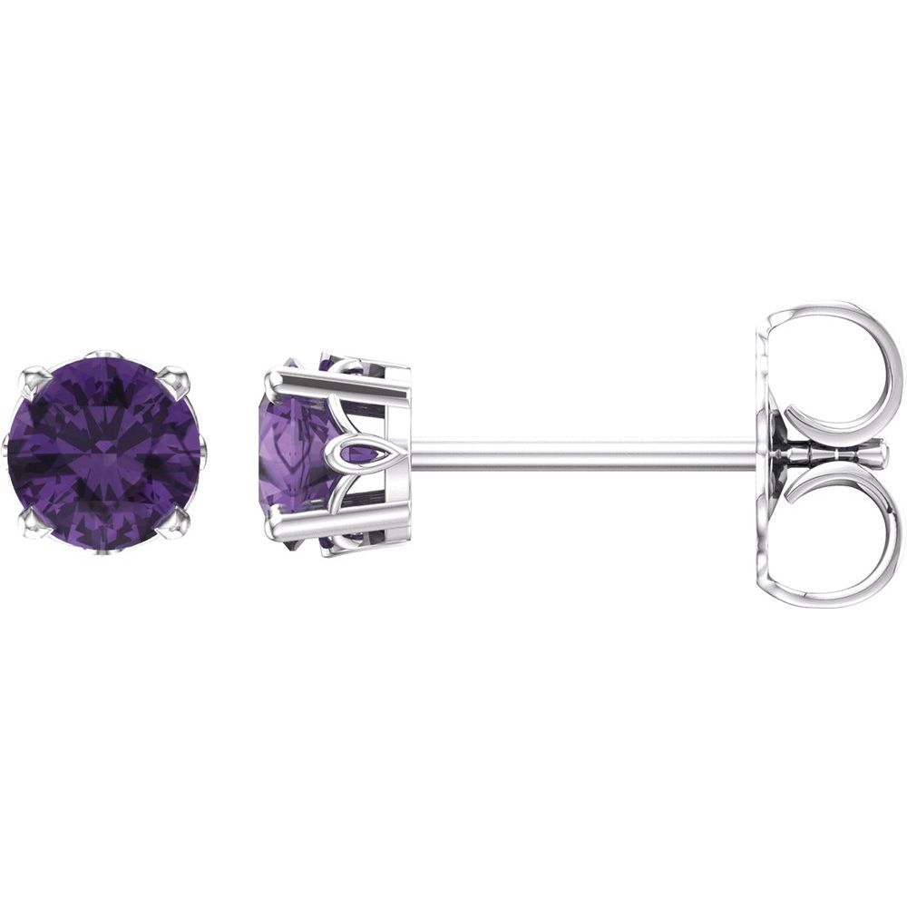 14k White Gold Natural Amethyst 4-Prong Scroll Setting Stud Earrings