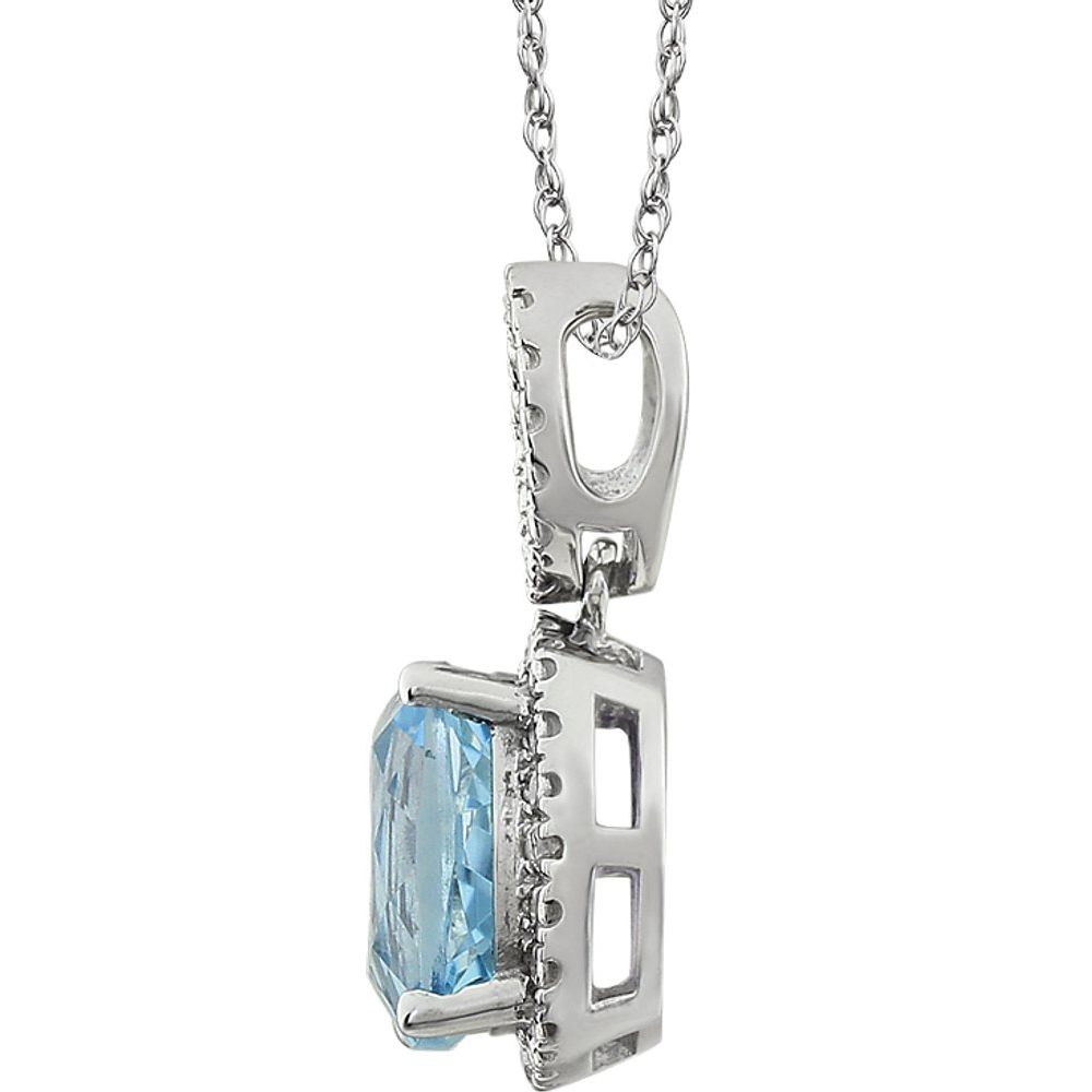 Genuine 14k White Gold Natural Sky Blue Topaz & .03 CTW Natural Diamond 18" Necklace