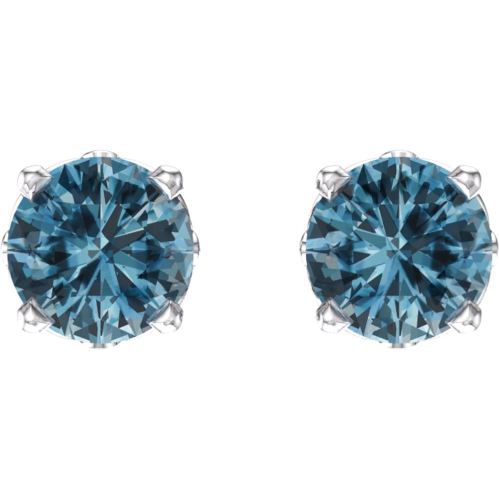 14k White Gold Natural Swiss Blue Topaz 4-Prong Scroll Setting Stud Earrings