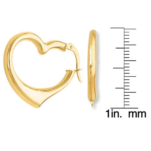 These adorable 14-karat yellow gold earrings feature a heart shaped design with a shining polished finish. Measuring 25-mm long x 25-mm wide and completed with a hinged backing, these earrings a perfect gift for yourself or one you love!