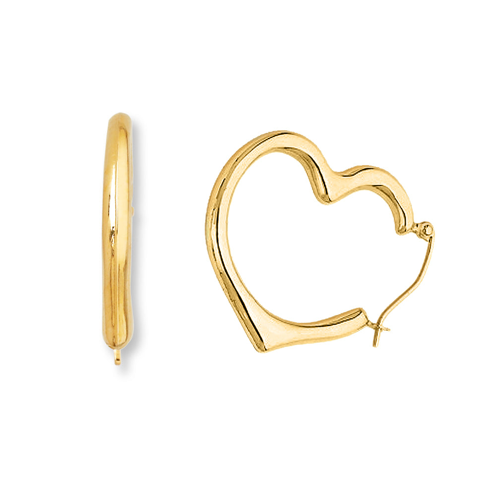 14k Yellow Gold 25mm Hinged Heart Hoop Earrings