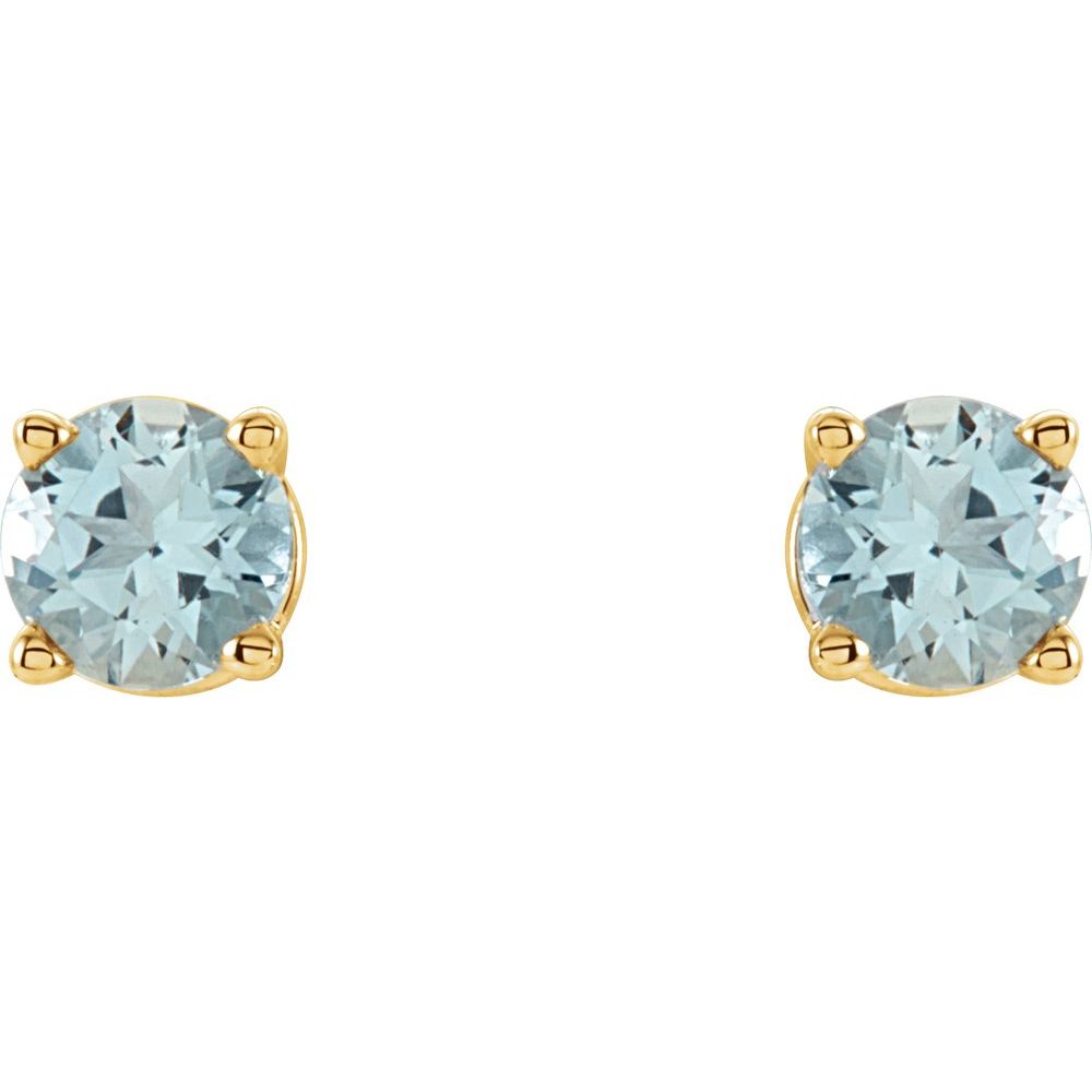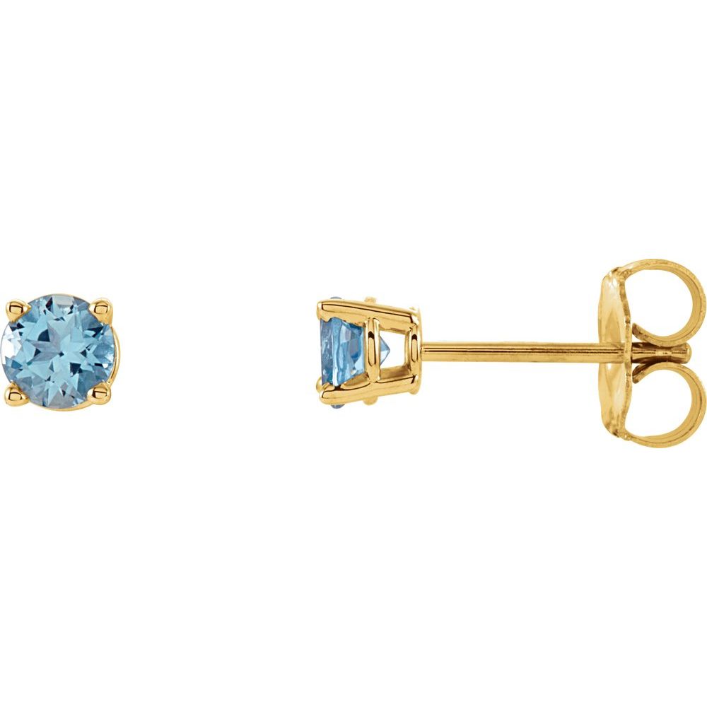 14k Yellow Gold 4 mm Natural Aquamarine Stud Earrings