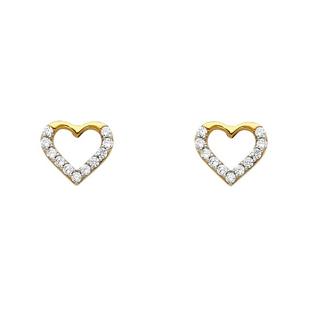 Genuine 14k Yellow Gold 8mm Cubic Zirconia CZ Lined Open Heart Ladies Stud Earrings