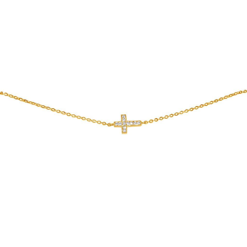 Embrace your faith with elegance through this exquisite 14-karat yellow gold sideways cross bracelet. A beautiful testament to spirituality, this delicate piece showcases a small cross that glimmers with pave-set, round-cut cubic zirconia, making it a sparkling beacon of your beliefs. Positioned gracefully in the center of a refined cable chain, this bracelet measures 7 inches in length, with an additional 1-inch extension to ensure a perfect fit that adapts to your style. Crafted from high-quality 14-karat yellow gold, this bracelet radiates warmth and luminosity, elevating any outfit with its understated charm. The sideways cross design adds a contemporary twist to a classic symbol of faith, allowing you to wear your beliefs not just in your heart, but also in your style. Whether you're dressing up for a special occasion or adding a touch of grace to your everyday look, this bracelet serves as a versatile accessory that resonates with meaning. Imagine how lovely it would be to accompany your favorite dresses or casual ensembles with this elegant piece. Its shimmering cubic zirconia stones catch the light beautifully, drawing attention to your wrist in the most enchanting way. This bracelet is more than just jewelry; it’s a celebration of your personal journey and convictions. Please note, however, that this stunning piece is not intended for children under the age of 14, ensuring that it is cherished by those who can fully appreciate its significance. So why wait? Let this dainty sideways cross bracelet be a constant reminder of your faith and style, ready to accompany you on every step of your journey. Make it yours and let your spirit shine in every moment you wear it.