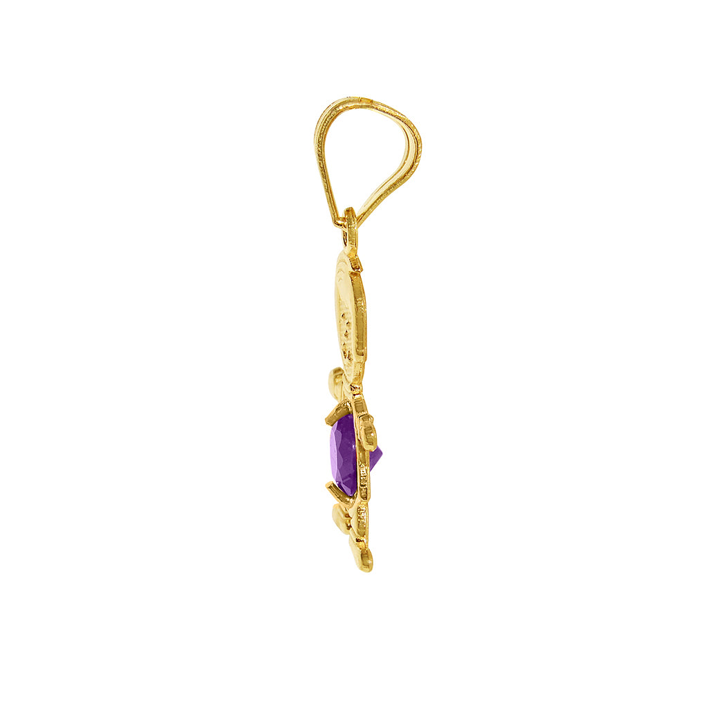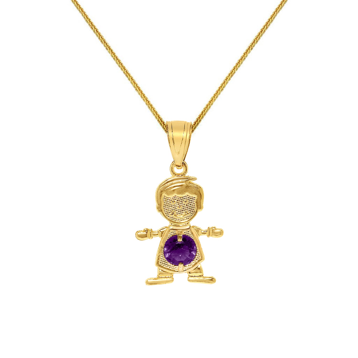 This 14-karat yellow gold pendant features an adorable smiling little boy and a prong-set, round-cut February birthstone cubic zirconia. . This pendant is a perfect gift for a new mother! You can also surpise your own mother on Mother's Day with this cute little charm with your birthstone color!
