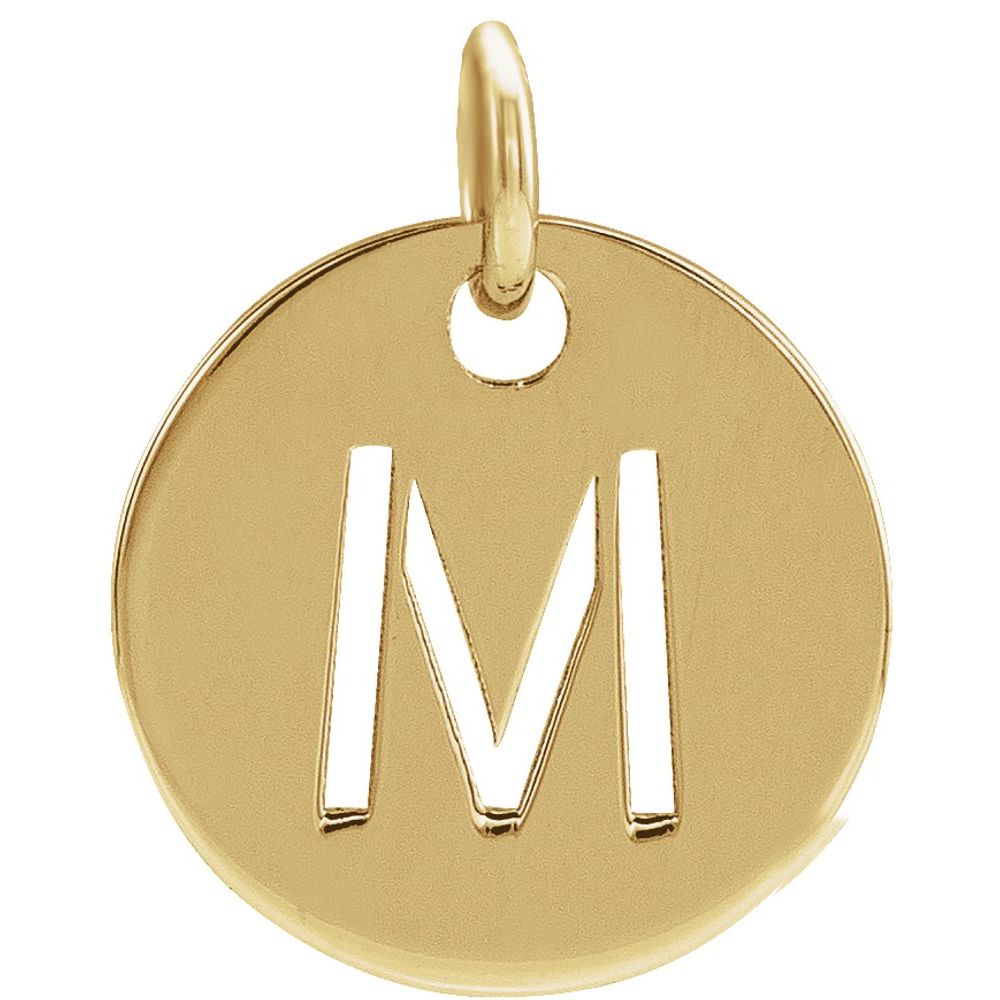 This adorable and stylish round disc with cut-out initial 'M' pendant is crafted of 18K Yellow Gold -Plated Sterling Silver . This is for the pendant only, no chain is included.