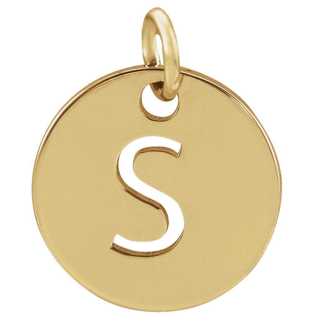This adorable and stylish round disc with cut-out initial 'S' pendant is crafted of 18K Yellow Gold -Plated Sterling Silver . This is for the pendant only, no chain is included.