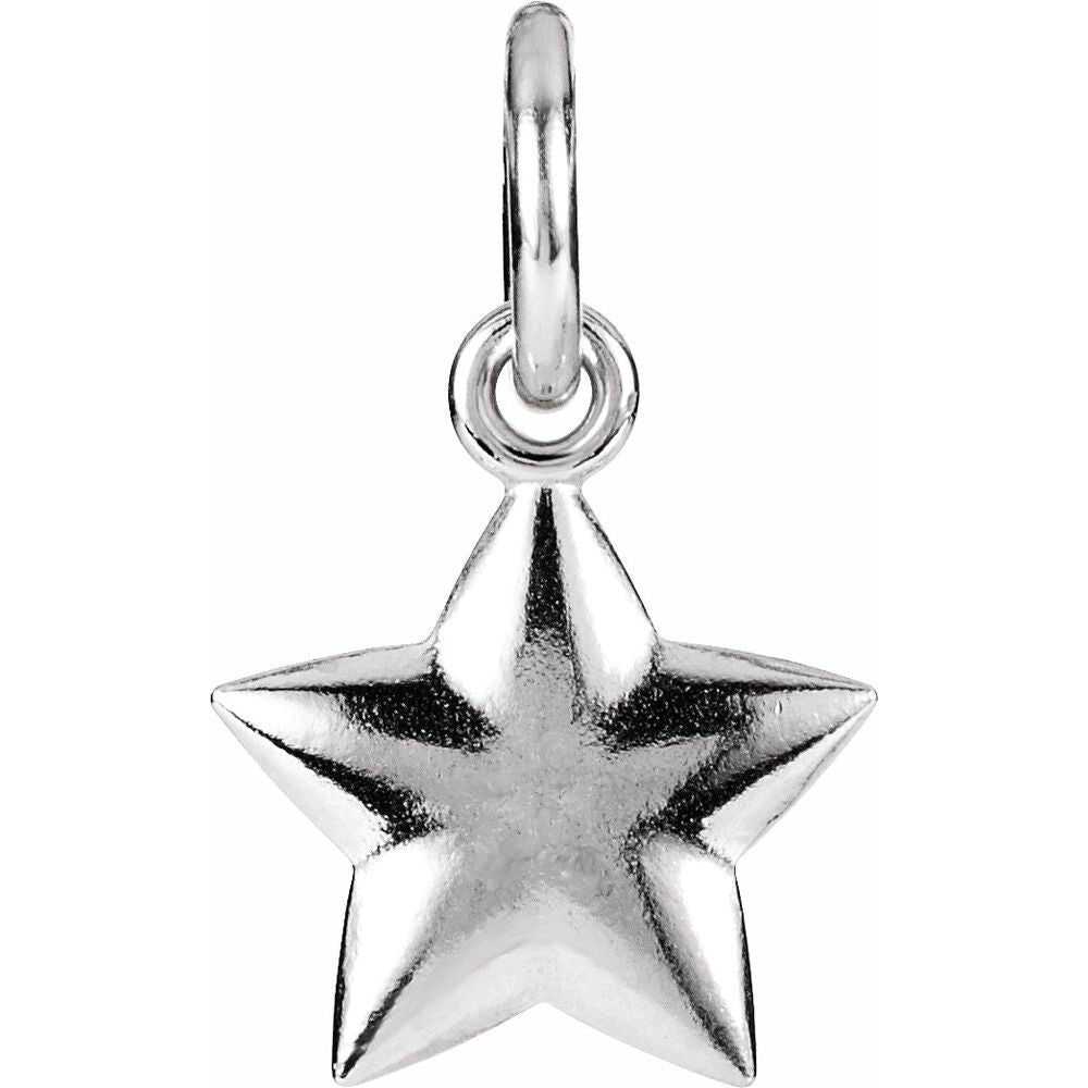 Designed in sterling silver, this charming puffy star would make a beautiful addition to your charm bracelet or a perfect accent on a pendant chain. Its polished finish gives it a brilliant shine, making it an ideal gift for a birthday or Mother's Day. Measuring 15.75mm long by 9.75mm wide and weighing approximately 0.72 grams, this versatile piece can be worn on a necklace or bracelet, and its compatibility with most US and European charm bracelets makes it easy to incorporate into your existing jewelry collection. **JEWELRY is NOT INTENDED for CHILDREN UNDER 14.** All weights and measurements are approximate and may vary per item.