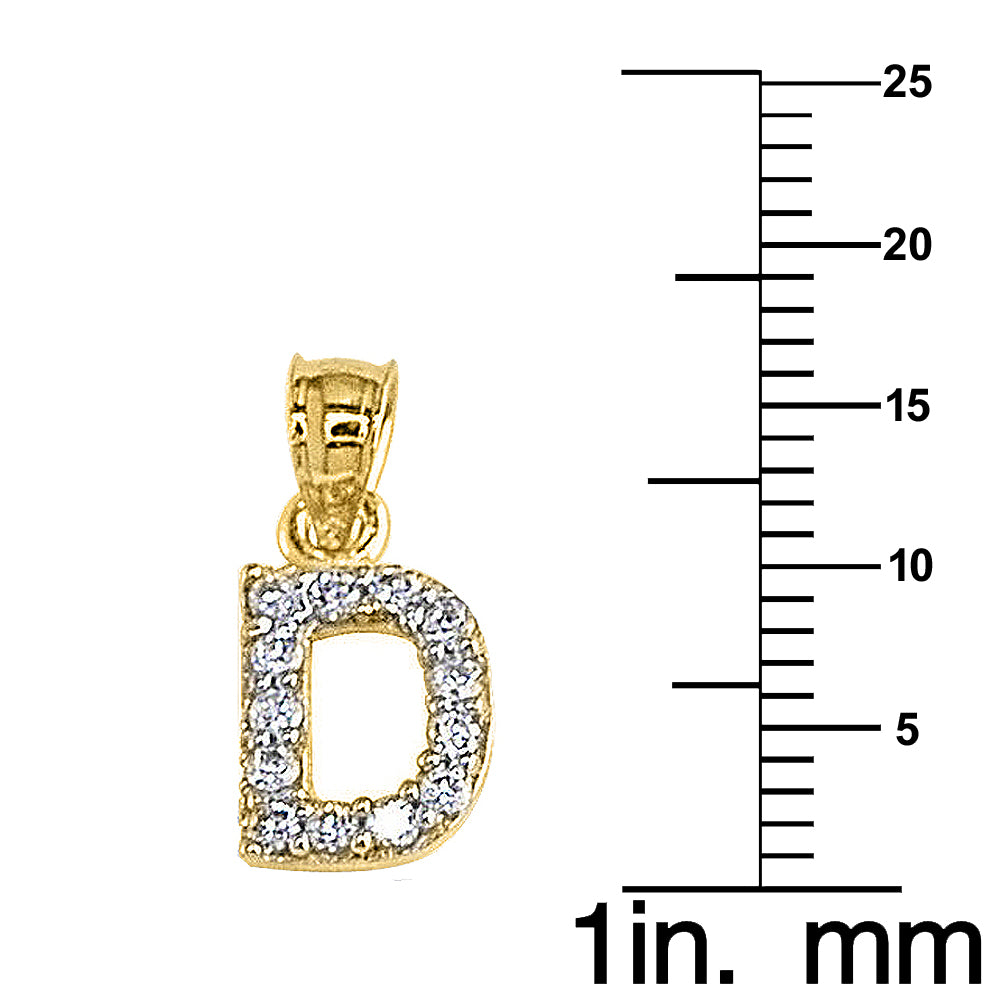 Genuine 14k Yellow Gold 0.59" Cubic Zirconia CZ Initial Block Letter 'D' Pendant for Men or Women - Gold Letter Charm