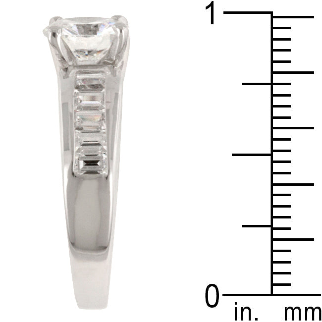 Silvertone Rhodium Plated Brass 8mm Round & Baguette CZ Engagement Ring