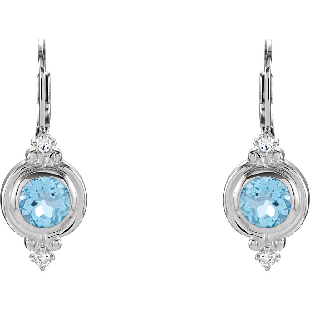 Sterling Silver Natural Swiss Blue Topaz & Imitation White Cubic Zirconia Lever Back Earrings