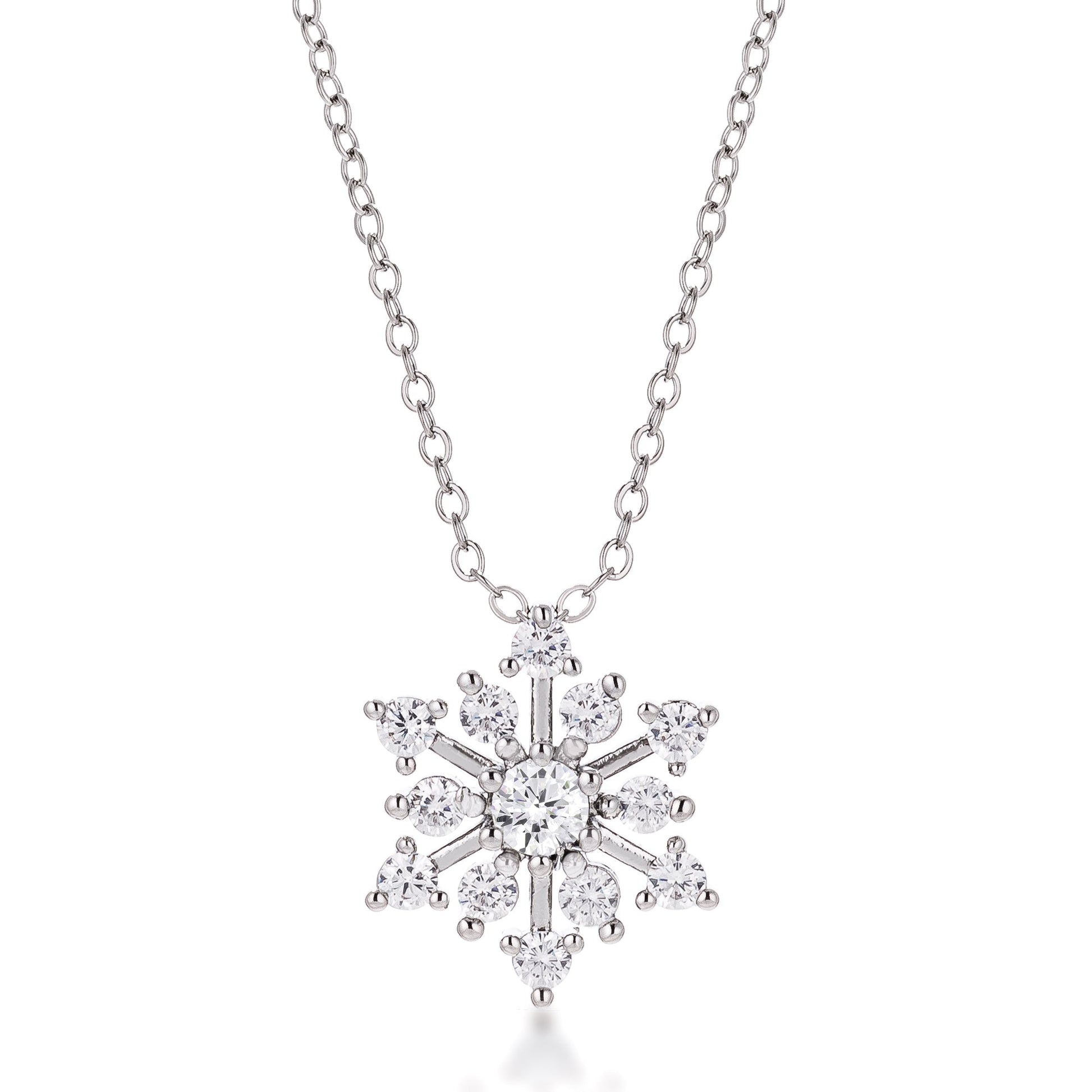 Winter Holiday Silvertone Rhodium Plated Cubic Zirconia Snowflake Necklace for Girls and Women